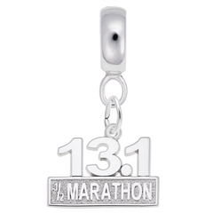 Half Marathon Charm Dangle Bead In Sterling Silver
