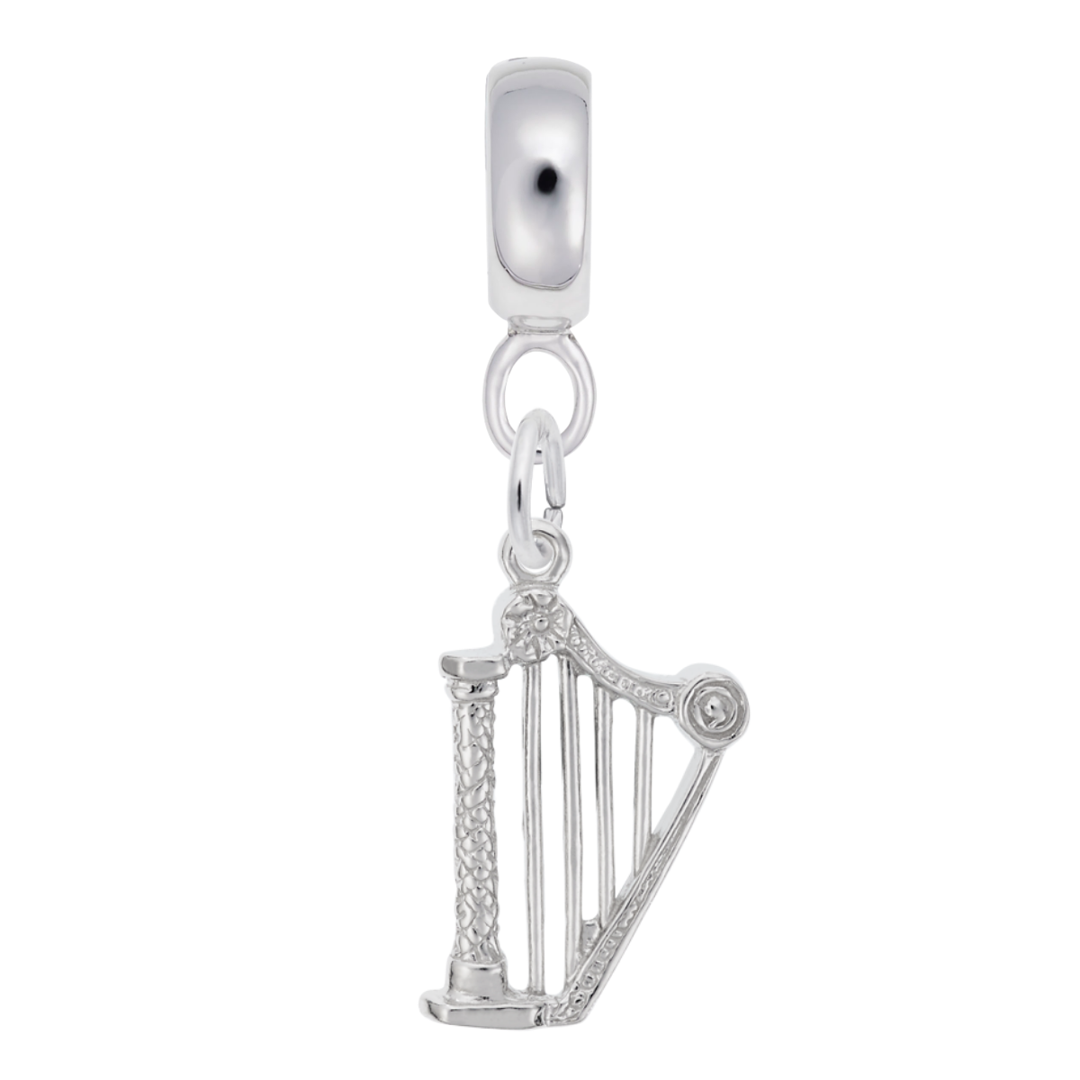 Like playing the harp? Make a sound! This Sterling Silver solid 3D harp charm dangle bead will charm dangle bead and impress anyone. Add this to your collection today.