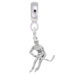 Hockey Player Charm Dangle Bead In Sterling Silver