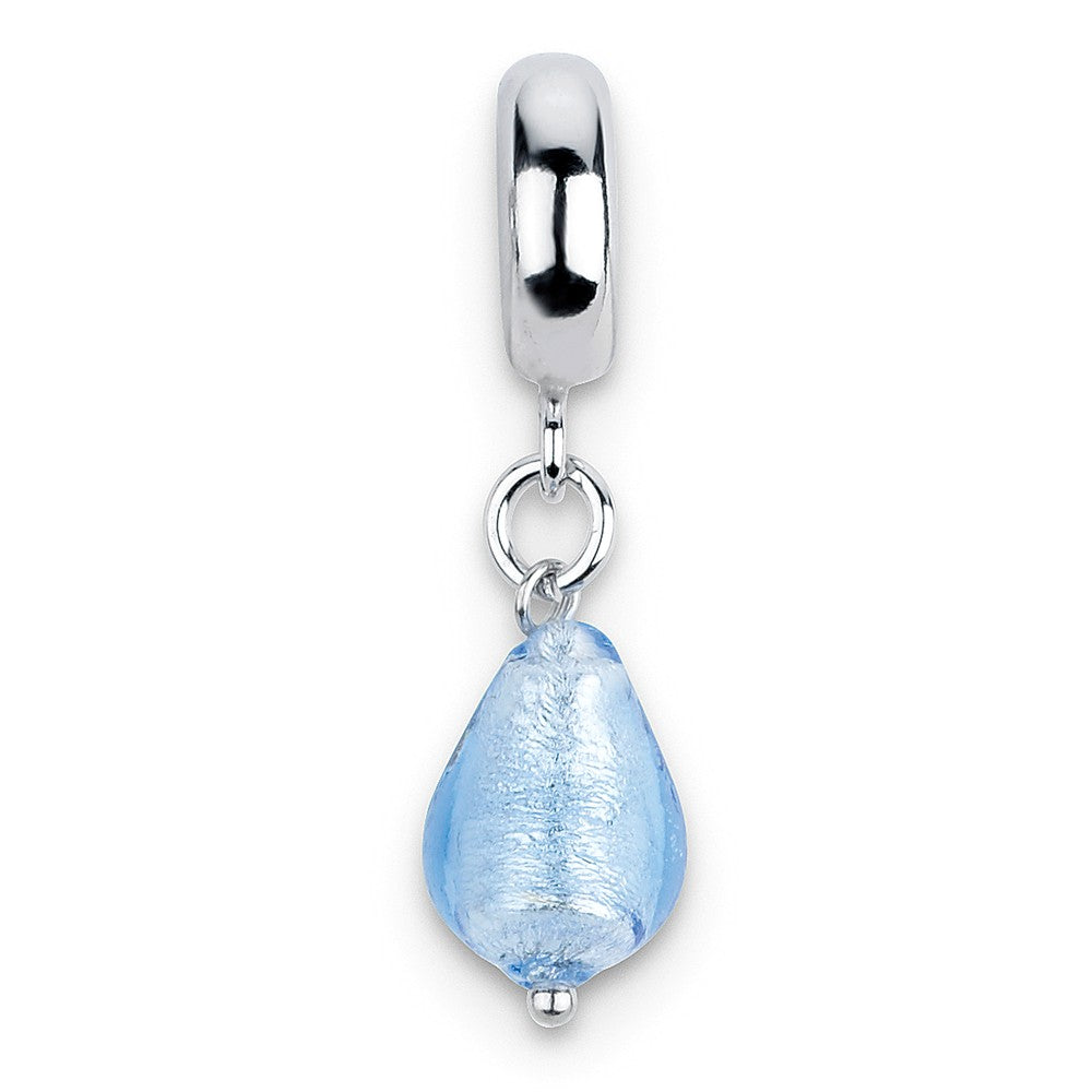 Sterling Silver Light Blue Italian Murano Dangle Bead Charm hide-image