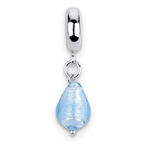 Light Blue Italian Murano Charm Dangle Bead in Sterling Silver