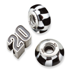 Sport,NASCAR #20 Erik Jones 2 Flag Charm Bead Set in Sterling Silver