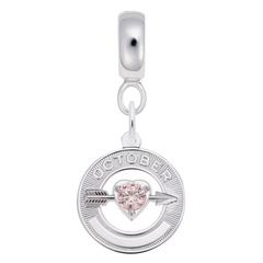 October Birthstone Charm Dangle Bead In Sterling Silver