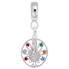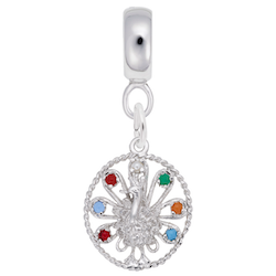 Love peacocks for their brilliance and beauty? Add this Sterling Silver peacock charm dangle bead to your charm dangle bead collection now!