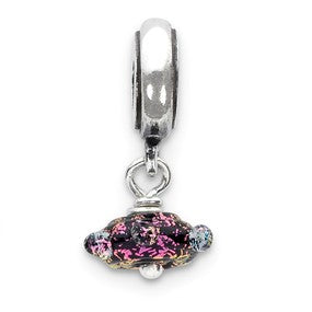 Purple Dichroic Glass Charm Dangle Bead in Sterling Silver