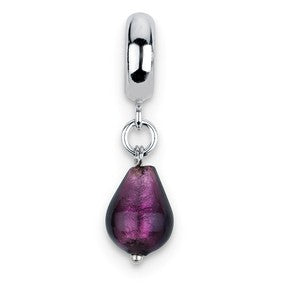Purple Italian Murano Glass Charm Dangle Bead in Sterling Silver