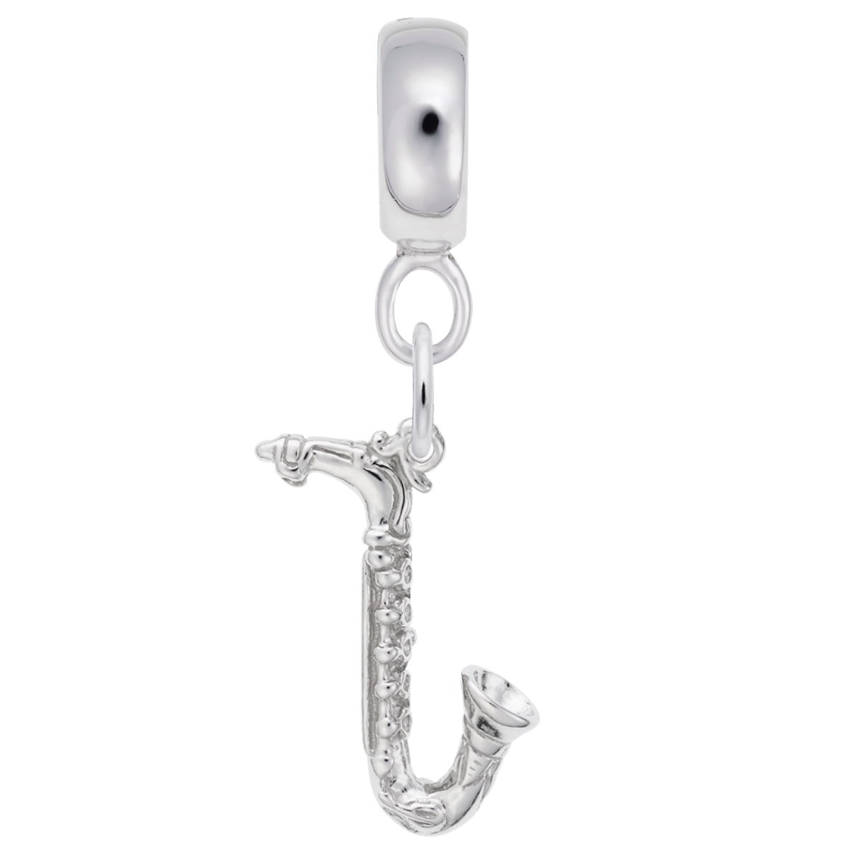 Feel the mood for jazz? Then this Sterling Silver saxophone charm dangle bead is for you! Add this solid 3D charm dangle bead to your collection today.