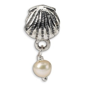 Shell Freshwater Cultured Pearl Charm Dangle Bead in Sterling Silver