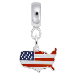 This colorful map highlights America in a cheerful way! Add this Sterling Silver engravable USA map charm dangle bead to your collection today!