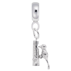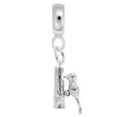 Woodpecker Charm Dangle Bead In Sterling Silver