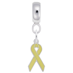Yellow Ribbon Charm Dangle Bead In Sterling Silver