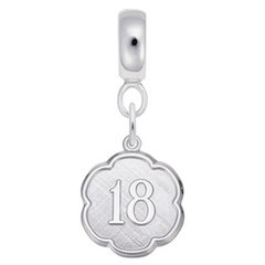Protected by our Lifetime Warranty!Need to declare your right to vote? Then mark it with this Sterling Silver engravable number 18 charm dangle bead! Get yours now!Rounded Charmdrop Hole Size Diameter: 4.6 MMCharm Height: 3/4 in. ~ (18.35 mm)Charm Width: 3/4 in. ~ (18.35 mm)Sterling Silver Charm Dangle Beads for Bracelets & NecklacesFits most Bead European Bracelets and will be...