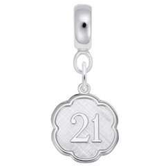 Protected by our Lifetime Warranty!Welcome to maturity! Now that you are 21, mark it with this Sterling Silver number engravable 21 charm dangle bead! Add one to your collection today!Rounded Charmdrop Hole Size Diameter: 4.6 MMCharm Height: 3/4 in. ~ (18.35 mm)Charm Width: 3/4 in. ~ (18.35 mm)Sterling Silver Charm Dangle Beads for Bracelets & NecklacesFits most Bead European Bracelets...