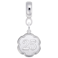 Protected by our Lifetime Warranty!Is 25 your number? Does it bring you good luck? If so, don't let the luck stop! Add this sterling silver number 25 charm dangle bead on your bracelet.Rounded Charmdrop Hole Size Diameter: 4.6 MMCharm Height: 3/4 in. ~ (18.35 mm)Charm Width: 3/4 in. ~ (18.35 mm)Sterling Silver Charm Dangle Beads for Bracelets & NecklacesFits most...