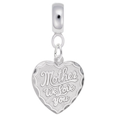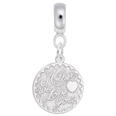 Protected by our Lifetime Warranty!Let your mother know you love her with this Sterling Silver engravable mother, we love you charm dangle bead! Add this to your charm dangle bead collection today!Rounded Charmdrop Hole Size Diameter: 4.6 MMCharm Height: 3/4 in. ~ (19.68 mm)Charm Width: 3/4 in. ~ (19.68 mm)Sterling Silver Charm Dangle Beads for Bracelets & NecklacesFits most Bead...