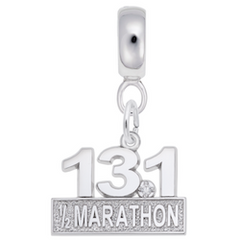 Protected by our Lifetime Warranty!Were you the star of the 13.1 marathon? Congratulations! Reward yourself with this Sterling Silver engravable marathon 13.1 charm dangle bead with diamond! This will make a nice add to your charm dangle bead collection!Rounded Charmdrop Hole Size Diameter: 4.6 MMCharm Height: 3/8 in. ~ (11 mm)Charm Width: 3/4 in. ~ (19 mm)Sterling Silver Charm Dangle...
