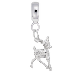 Protected by our Lifetime Warranty!See a beautiful fawn in the road? Capture it with this Sterling Silver solid 3D fawn charm dangle bead! A great addition to a charm dangle bead bracelet.Rounded Charmdrop Hole Size Diameter: 4.6 MMCharm Height: 3/4 in. ~ (17.7 mm)Charm Width: 5/8 in. ~ (16.83 mm)Sterling Silver Charm Dangle Beads for Bracelets & NecklacesFits most Bead...