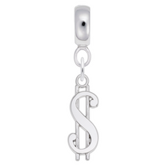 Protected by our Lifetime Warranty!Show your prosperity with this Sterling Silver 2D dollar sign charm dangle bead! A great addition to a charm dangle bead collection.Rounded Charmdrop Hole Size Diameter: 4.6 MMCharm Height: 7/8 in. ~ (21.07 mm)Charm Width: 3/8 in. ~ (10.05 mm)Sterling Silver Charm Dangle Beads for Bracelets & NecklacesFits most Bead European Bracelets and will be great...