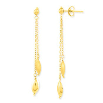 10k Yellow Gold 2 Strands Puff Rice Beads Ear