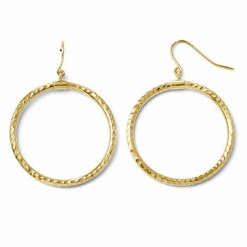 10k Yellow Gold Textured Shepherd Hook Dangle Hoop Earrings