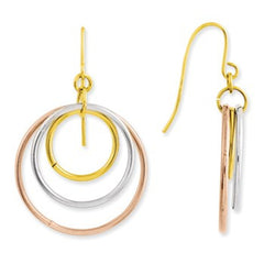 14k Tri-Color Polished 3 Circle Dangle Earrings