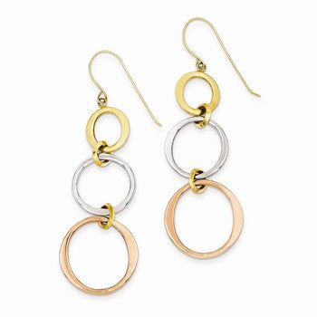 14k Tri-color Triple Circle Dangle Earrings