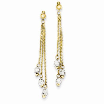 14k Two-tone Cable Chain Faceted Bead Earrings