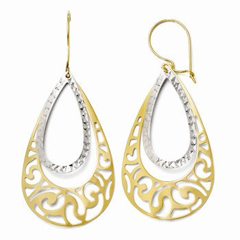 14k Two-tone Diamond-cut Dangle Earrings