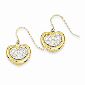 14k Two-tone Diamond-cut Heart Dangle Earrings