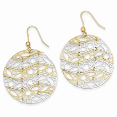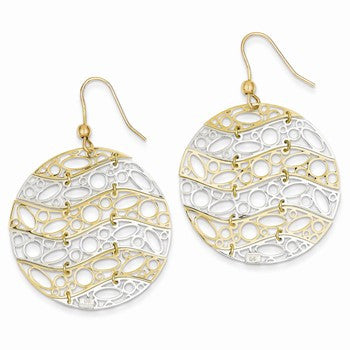 14k Two-tone Fancy Circle Shepherd Hook Earrings