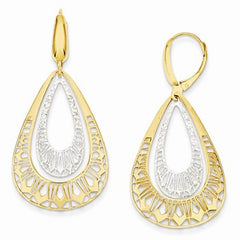 14k Two-tone Fancy Oval Leverback Earrings