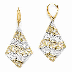 14k Two-tone Polished and Diamond-cut Leverback Earrings