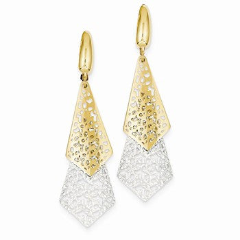 14k Two-tone Polished Diamond-cut Triangular Leverback Earrings