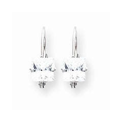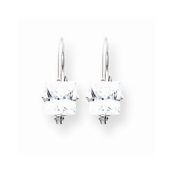 14k White Gold 5mm Princess Cut Cubic Zirconia Leverback Earring