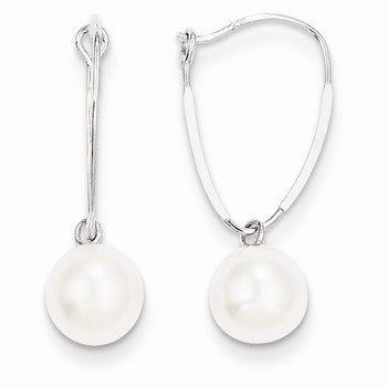 14k White Gold 7mm Freshwater CulturedPearl Dangle Earrings
