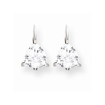 14k White Gold 7mm Trillion Cubic Zirconia Leverback Earrings