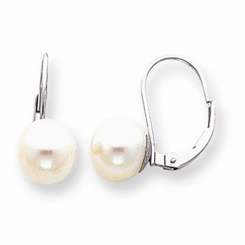 14k White Gold 8mm Pearl Leverback Earrings