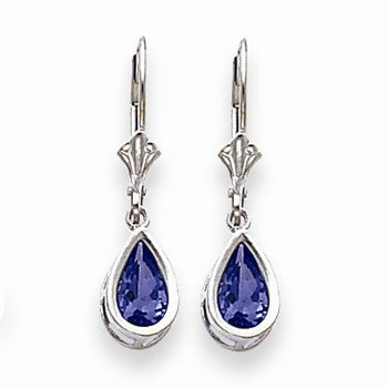14k White Gold 8x5mm Pear Tanvorite leverback Earring