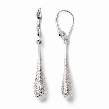 14k White Gold Diamond-cut Dangle Leverback Earrings