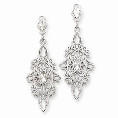 14k White Gold Diamond-cut Filigree Dangle Earrings