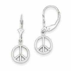 14k White Gold Peace Symbol Leverback Earrings