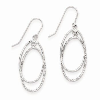 14k White Gold Polished and Textured Ovals Dangle Earrings
