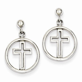 14k White Gold Polished Eternal Life Cross Dangle Post Earrings