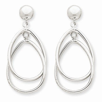 14k White Gold Polished Oval Dangle Post Earrings