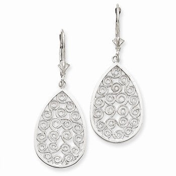 14k White Gold Teardrop Filigree Dangle Leverback Earrings