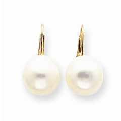14k Yellow Gold 10mm-11mm Freshwater Cultured Pearl White button Earrings