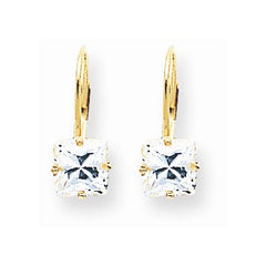 14k Yellow Gold 6mm Princess Cut Cubic Zirconia Leverback Earrings