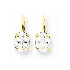 14k Yellow Gold 8x6mm Oval Cubic Zirconia Leverback Earrings