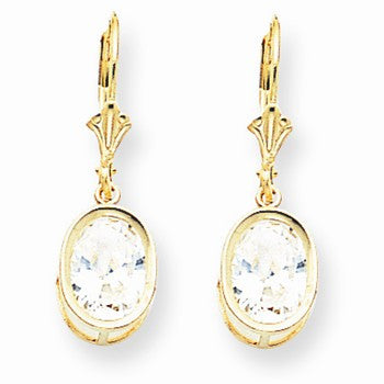 14k Yellow Gold 9x7mm Oval Cubic Zirconia Leverback Earrings