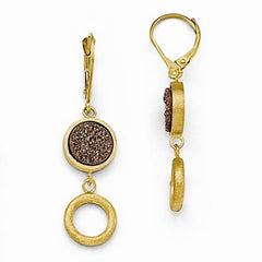 14k Yellow Gold Brown Druzy Scratch-finish Leverback Earrings